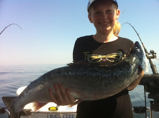 Startede dagen i dag med at smide en 10+ linen knækkede ved dipsyen ved nettingen fik så denne på 8 kg dette setup gav 4 laks i båden i går med den største på 6 kg mistede 5 laks i går også så der er stadig godt med laks